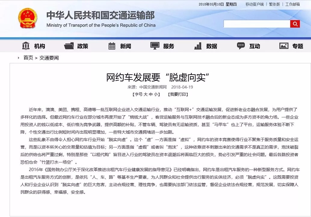 交通部官網(wǎng)1個(gè)月內(nèi)發(fā)7篇評(píng)論直指網(wǎng)約車亂象